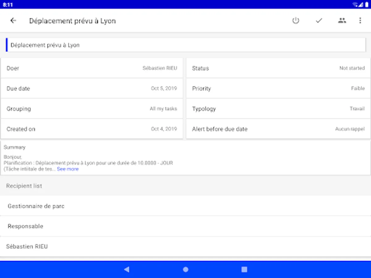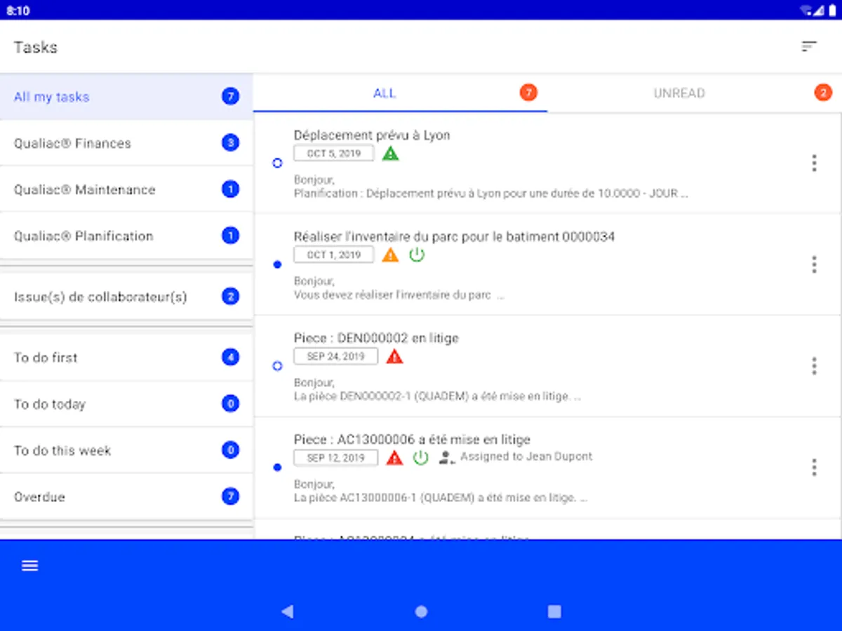 This mobile application can be used to receive tasks to process, sent from all applications in the fixed user interface of the Cegid XRP Ultimate product.