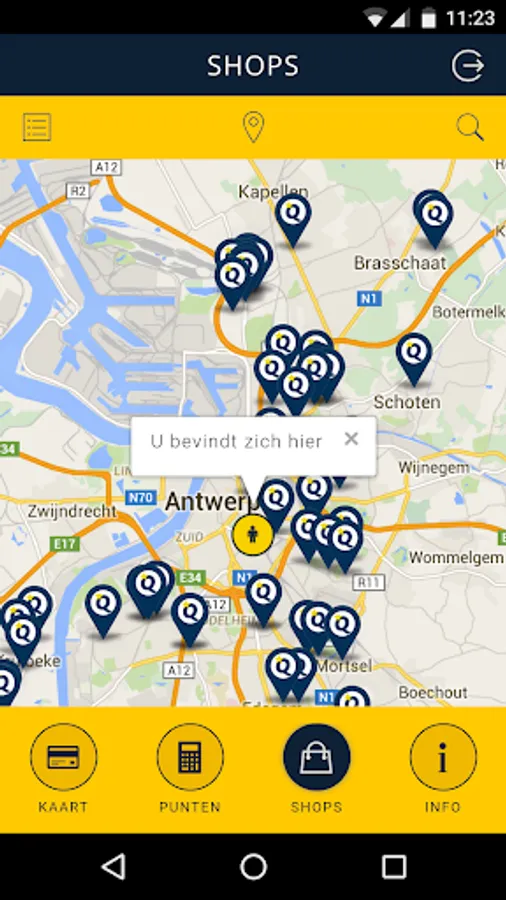 3. The icon 'shops' shows your location and all Qualiet see things in your neighborhood.