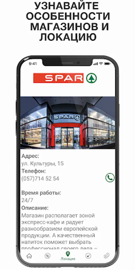 Using the application, you can get rid of plastic cards, the My SPAR discount system will always be on your mobile device. You can also find the most convenient location of a supermarket in Kharkov and follow the news of the network!