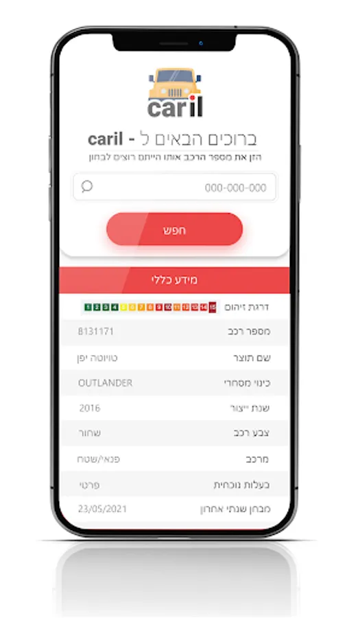 רגע לפני שאתם רוכשים רכב יד שנייה - כל המידע שתרצו לדעת על הרכב לפי מספר רכב: שנת יצור, מועד טסט קרוב, צבע הרכב, קיום תו נכה, מקומות ישיבה, אביזרי בטיחות ועוד... המידע מתעדכן על בסיס יומי ובקרוב יעלות שירותים נוספים כדי לתת לכם את כל המידע שאתם צריכים לפני הרכישה.