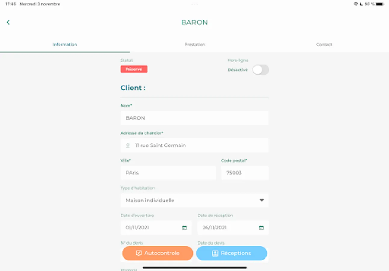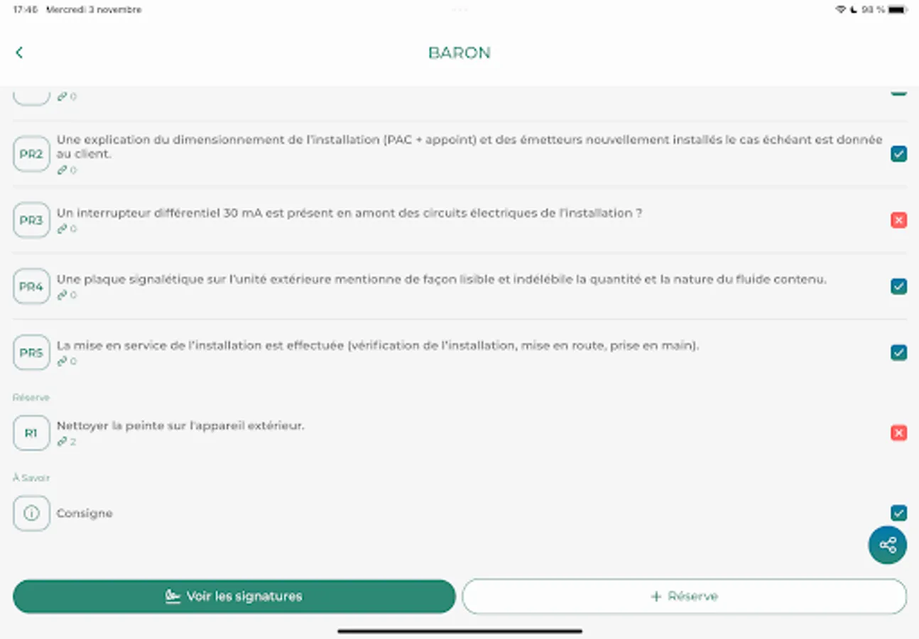 Ckeck'Réno contains lists of self-checking points that can be customized according to your needs, as well as specific check points to be introduced with your client upon receipt of the work.