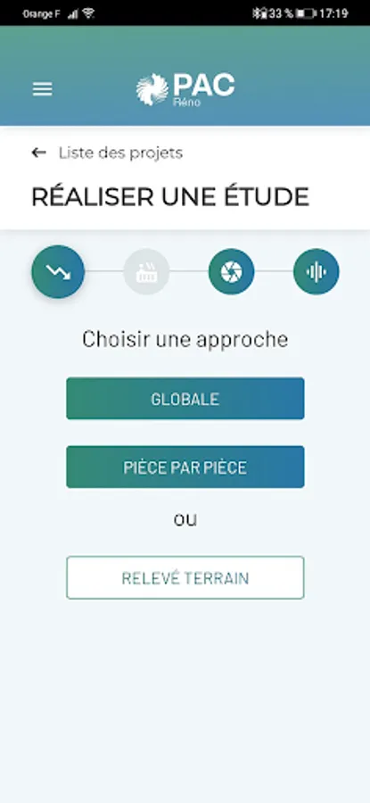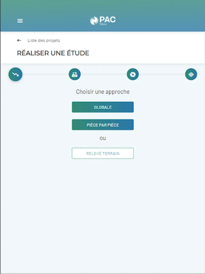 If he does not wish to embark directly on a complete study at his client's premises, the professional also has a "field survey" function. This function makes it possible to record as much information as possible during a first site visit, and to ensure that you have all the information necessary for carrying out a complete study later.