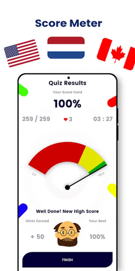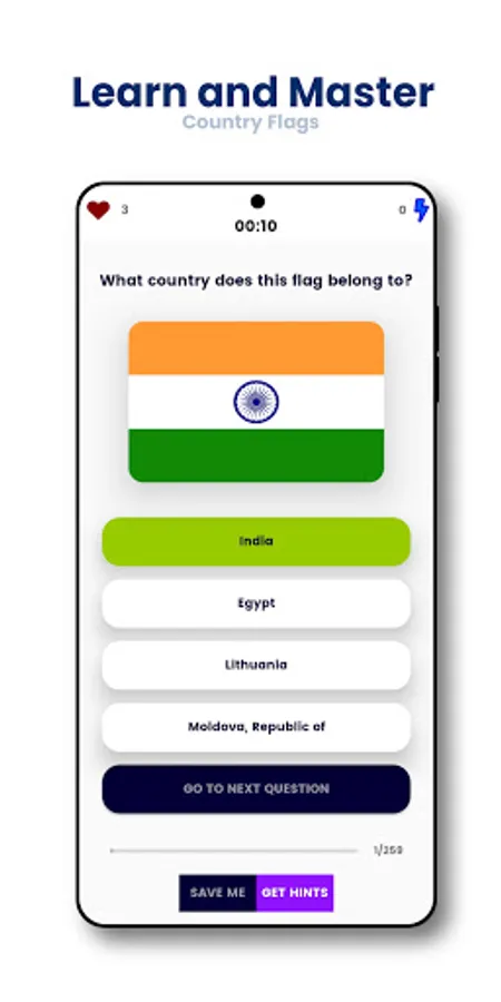 ⬛ Score based on correct answers and time factor which decides how well versed you are in mastering flags of the world