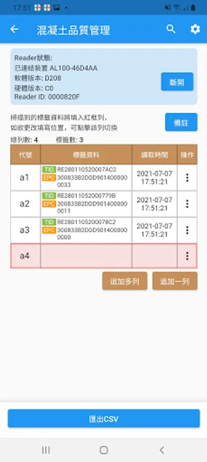 This APP is mainly used for UHF RFID. It is developed by Yufa Technology to assist the Test Body Inspection Engineering Institute of the Ministry of Transportation. It can be applied to construction plants and laboratories, eliminating manual copying and labeling operations.