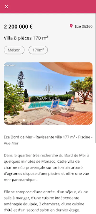 Thanks to our Mobile application, you are connected in real time to your hunter who sends you the best opportunities with a detailed analysis. You will find all the photos, videos and information collected by your hunter and will have the possibility of geolocating your property, identifying points of interest (schools, shops, transport, etc.), simulating travel times, and to walk virtually in your future neighborhood!