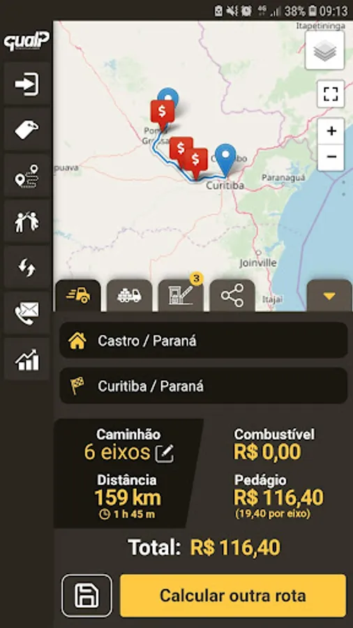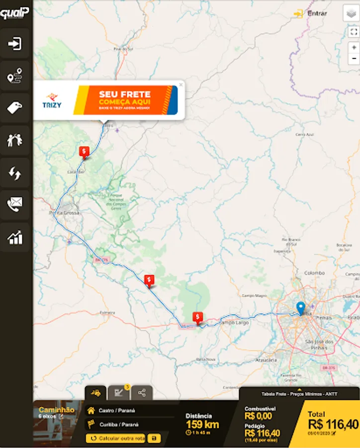 Calculate the costs of your trip, knowing how much you will spend on tolls and fuel, and knowing the distance and estimated time of the route.