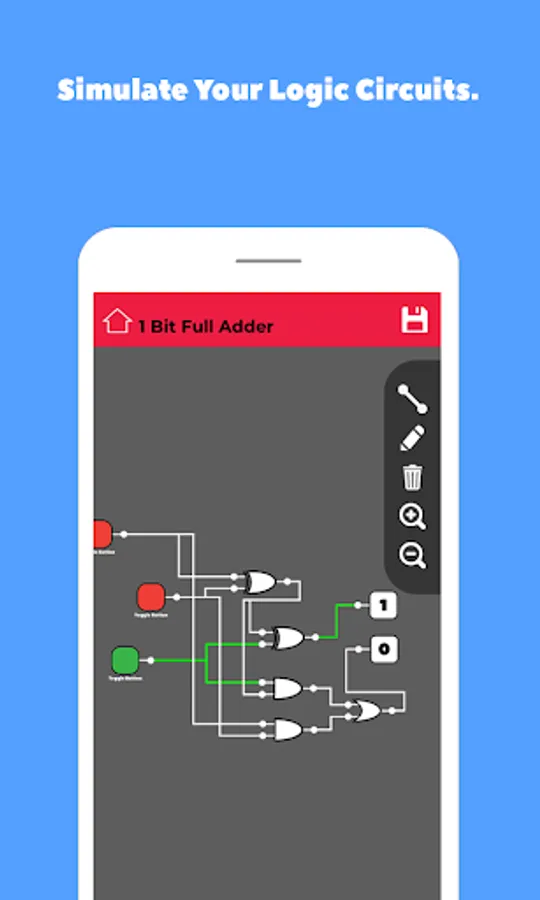 Simulate your logic circuits through Qualsimm Logic Circuit Simulator Mobile app.