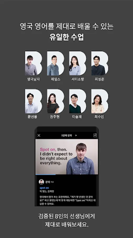 Brit English is a combination of real English teachers and English speakers as well as an announcer and actor teachers of Posh pronunciation.