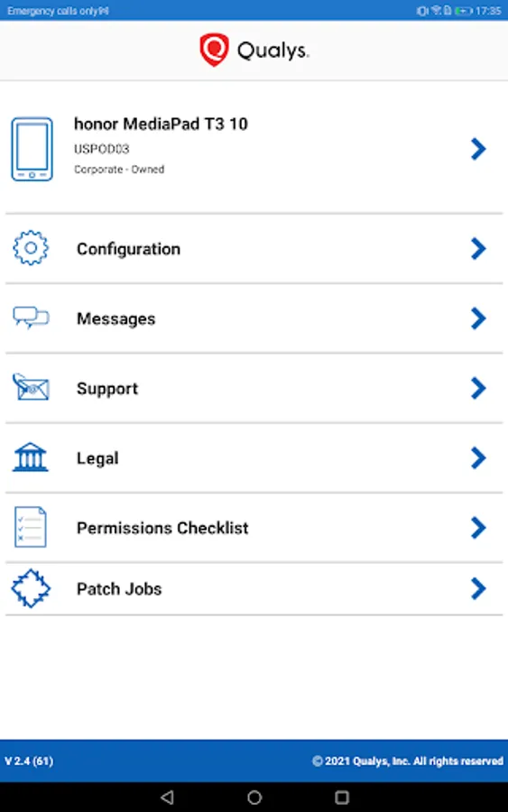Qualys Mobility solution secures, monitors, manages and supports mobile devices deployed across various platforms, service providers and enterprises. We provide Over-The-Air (OTA) distribution of applications (MAM), data and configuration settings for all types of Android devices; including smartphones and tablets.