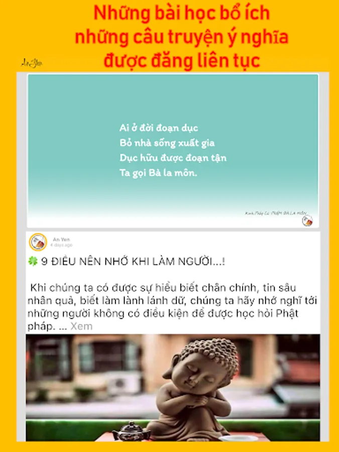 The application was created with the desire to share beautiful words and ideas, share Buddhist scriptures to sow love for those who love Buddha Dharma.
