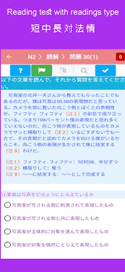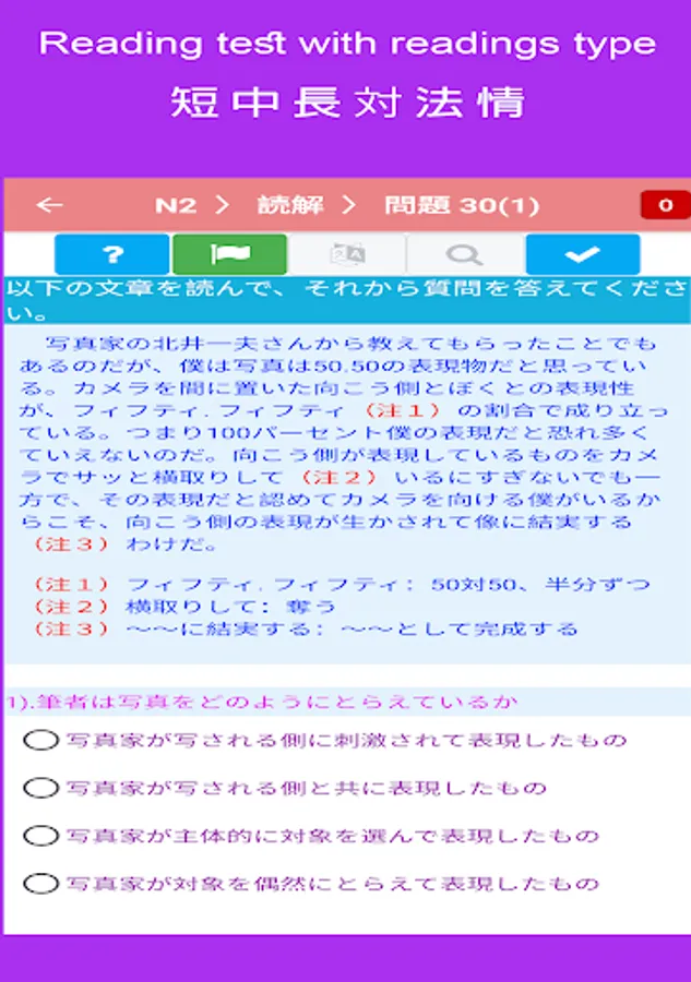 - The number of exam questions is rich with more than 3000 exam questions, each subject from 20 to 30 questions. Words, kanji, grammar, reading comprehension, star search (*).