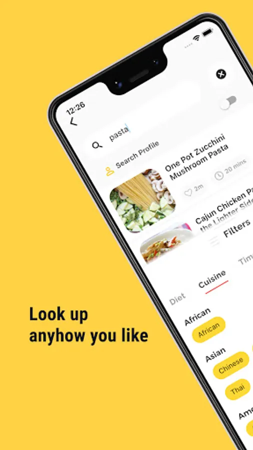 - Find recipes based on what's in your fridge, how much time you have to cook, etc.