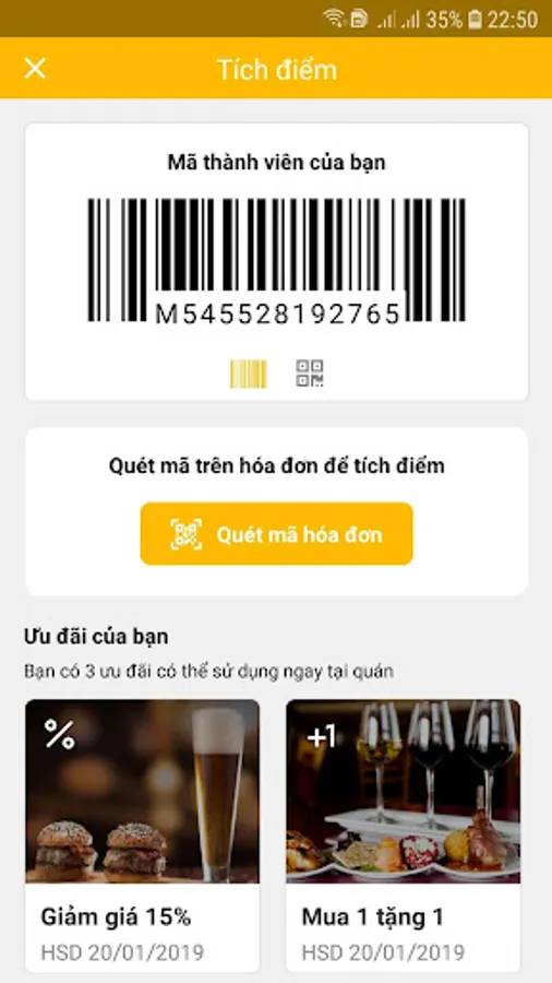+ Accumulate points easily in the shop by 2 ways: giving the app to the cashier to scan the code or manually scan the code on the bill