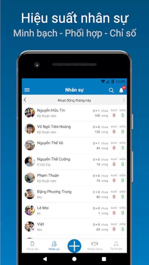 Delivery and distribution of people quickly. Discuss processing, share documents, update and review work. Support timekeeping, salary calculation based on work and work efficiency.