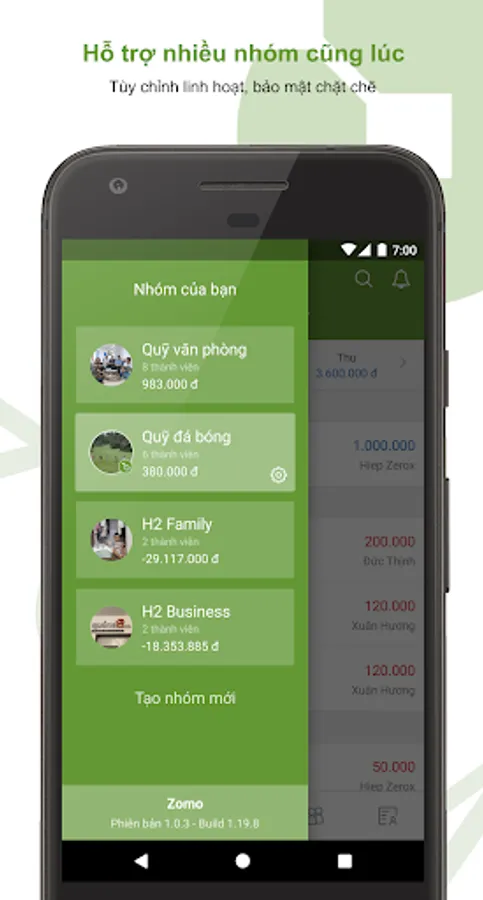 Zomo is an application that helps all members manage group money in an easy, convenient, safe and transparent way. Everyone, if they have the right, can enter income and expenditure and make notes in the general fund. When there is an incident, there is an instant notification to everyone in the group. Any member, anytime, anywhere can view the balance and report details of the transactions in their group funds.