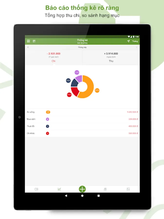 + Clear statistical reports by revenue and expenditure, categories and subjects, can be sent via email
