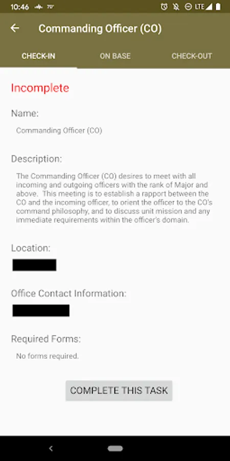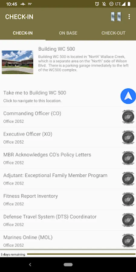 Converge is a mobile application that serves as an automated assistant for Marines checking into, and out of, the II MEF Information Group (MIG) at Camp Lejeune, NC. Resources include directions, office information, phone numbers, and task instructions to simplify and expedite these processes. The app also identifies numerous on-base services (fitness centers, child development centers, health care options, etc.) to assist with the acclimation process.