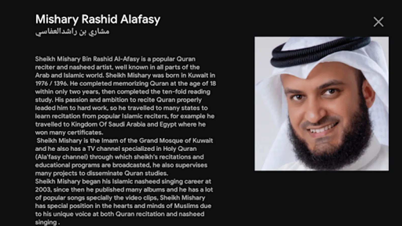 + Listen to the world famous reciters including Sudais, Mashari Rashid, Manchaoui and more.