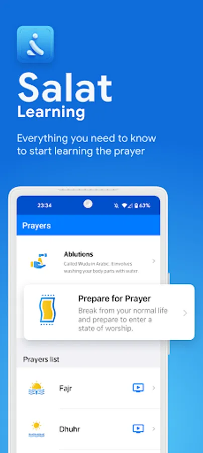 1- Ablution Guide: Salat includes a comprehensive guide to performing ablution, complete with illustrations and explanations.
