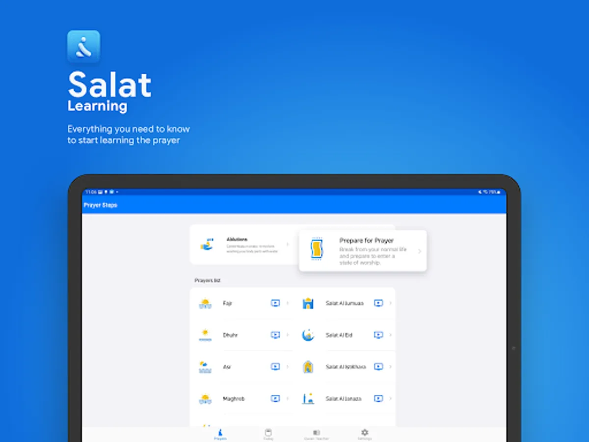 Salat Pro is an easy-to-use mobile application designed to help users learn and learn and perform prayer. With detailed step-by-step instructions and illustrations, Salat guides users through each stage of the prayer, from ablution to final salaam.