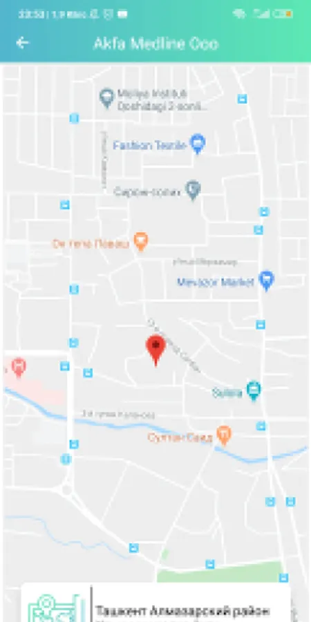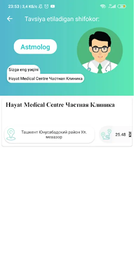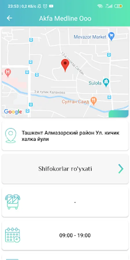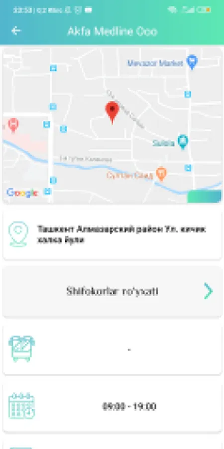 • Kerakli shifoxona tanlangandan so`ng uni ma`lumotlari ko`rsatiladi