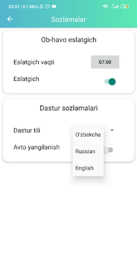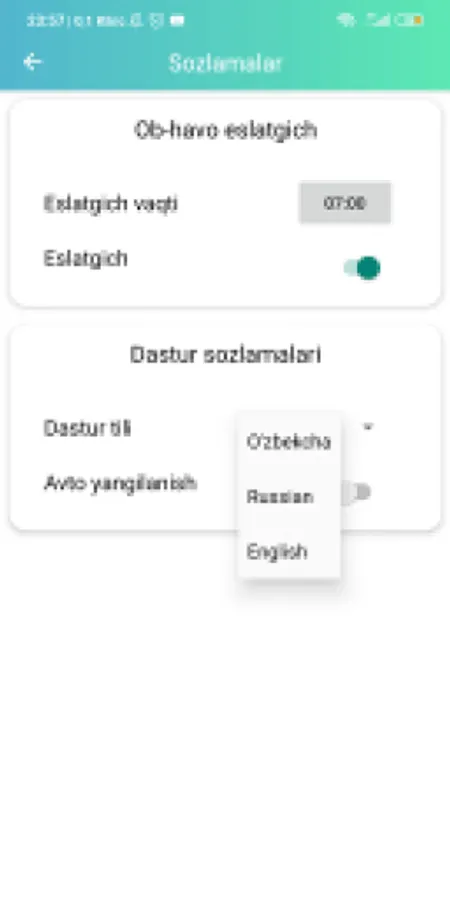 • Dastur to`liq uchta tilda ishlaydi, O`zbek, Rus, English tillarida.