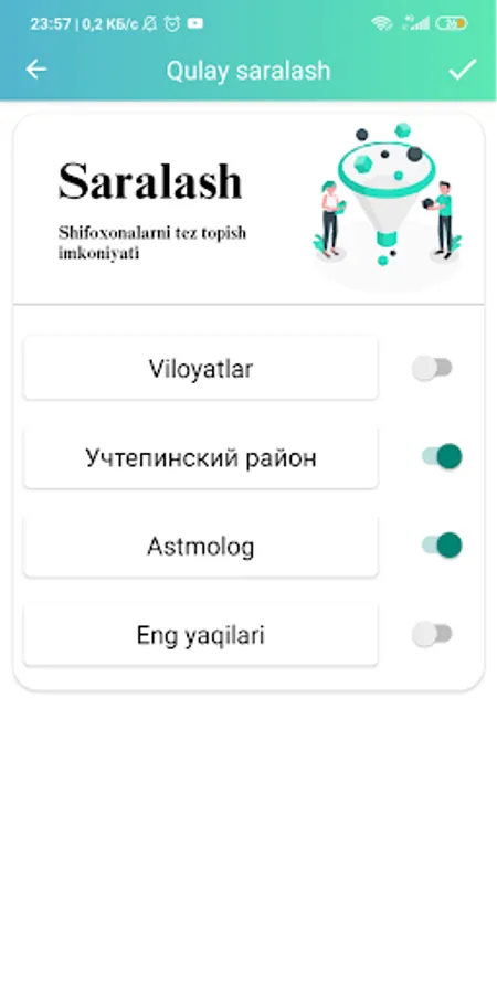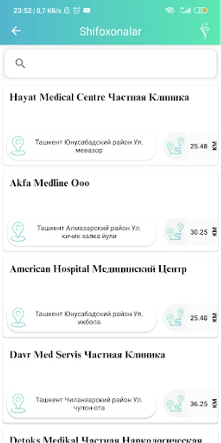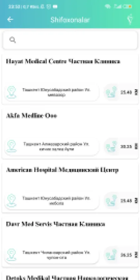 ularni narxlari kabi ma'lumotlarga ega emasmiz, bizga shifoxonalar zarur bo'lganda uni topishga qiynalib qolamiz, vaqtimizni yo'qotamiz, uni topgani-mizdan so'ng bizga kerakli-mizdan shifts ya'ng bizga kerakli-shifokor yaati'qi boqi isqi isaq is ketadi ana shunday muammolarni hal qilish maqsadda bu funksionallikni ham qo'shishga qaror qildik.