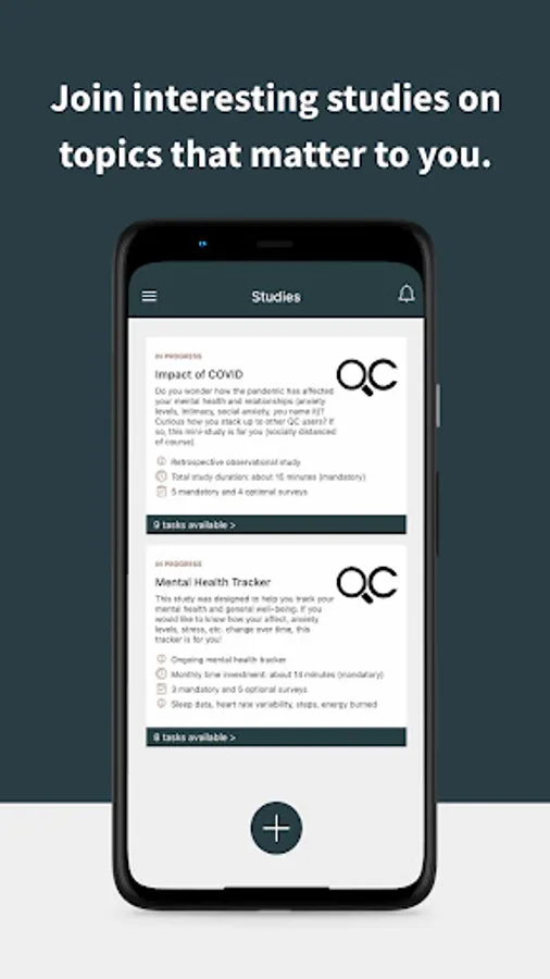 Quantified Citizen Pro is the professional version of the Quantified Citizen app. If you have been invited to join a study by one of our partners you will be able to review participation details, determine if you are eligible and join the study and submit information as part of your participation.