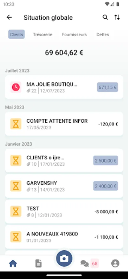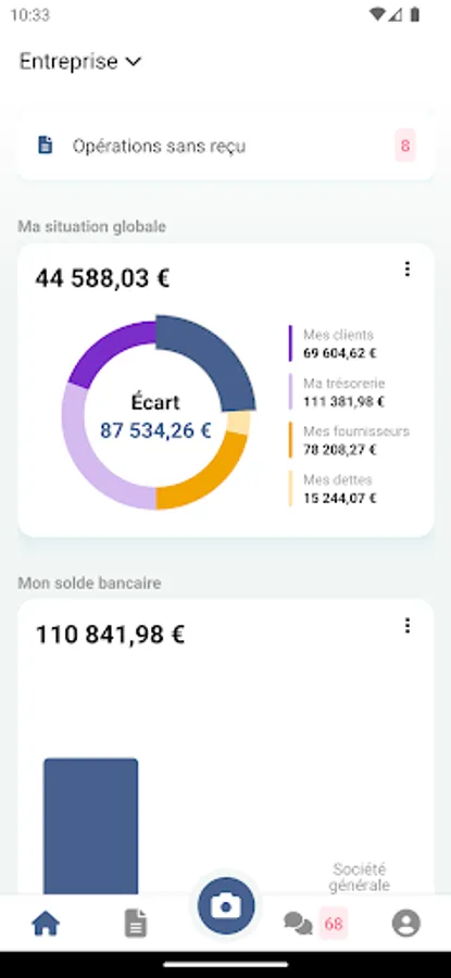 Visualization of your key figures, details of your customer outstandings and your suppliers' debts,