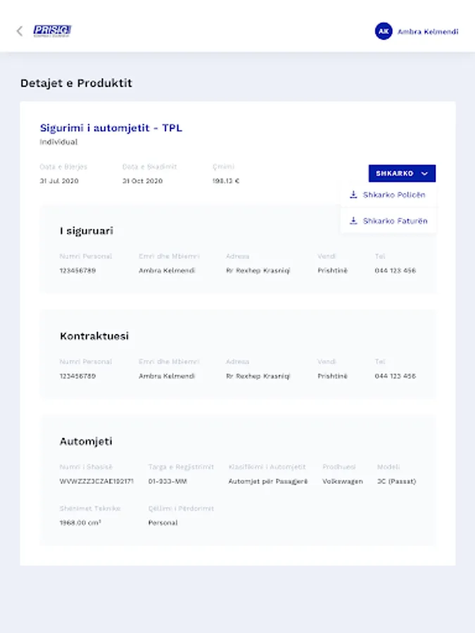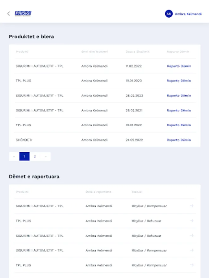 Mundësi raportimi të dëmeve dhe kërkesave për kompensim për çdo policë aktive.