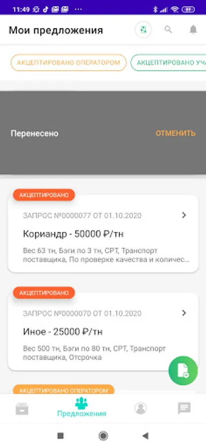 The application allows you to make counter offers to achieve optimal delivery conditions that suit both suppliers and the Russian Tonnage company.