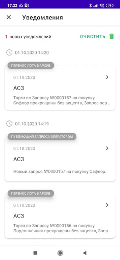 Suppliers will regularly receive push notifications about new lots for the purchase of products and about new counter offers from the Russian Tonnage company for the lots in the auction.
