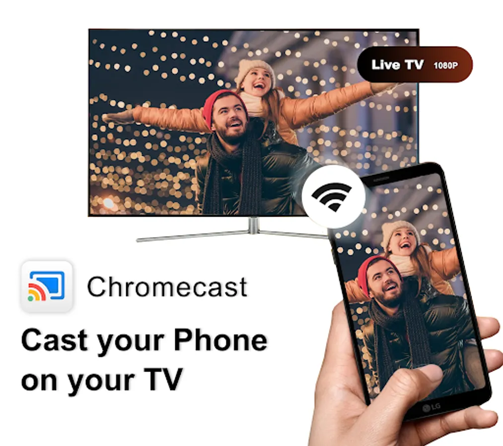 Cast app Chromecast & TV Cast can show all your, videos, photos, games, and other apps on a bigger screen with your same Wifi connection.