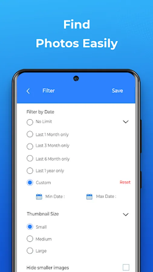 - Filter deleted pictures by date & size.