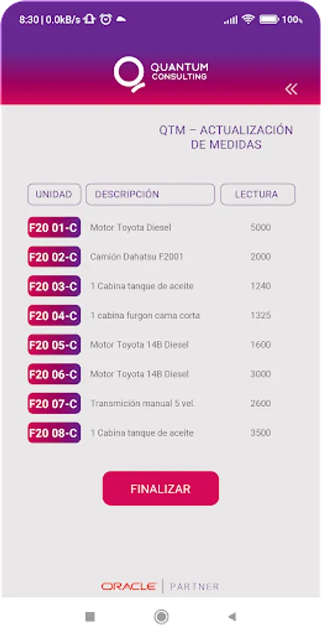 For each one of them, it will allow entering the current mark and validate that it is greater than the previous one to update the net reading in JDE.