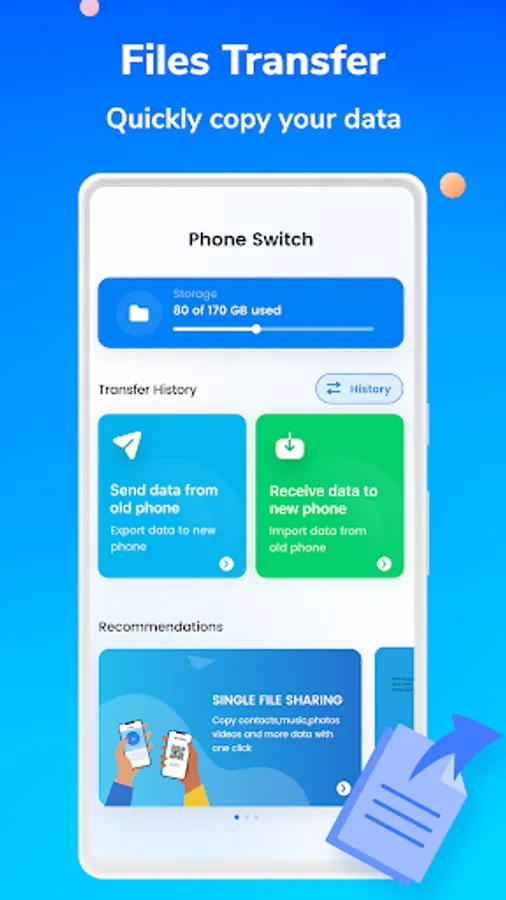 Just copy all your data from your old phone and transfer it or send it to your new phone using Smart Switch lite, phone clone - phone switch. The data being transferred is secure with end-to-end encryption. Transfer large amounts of data in minutes. Plus, this Smart Switch Lite - Transfer is Free with minimal ads.