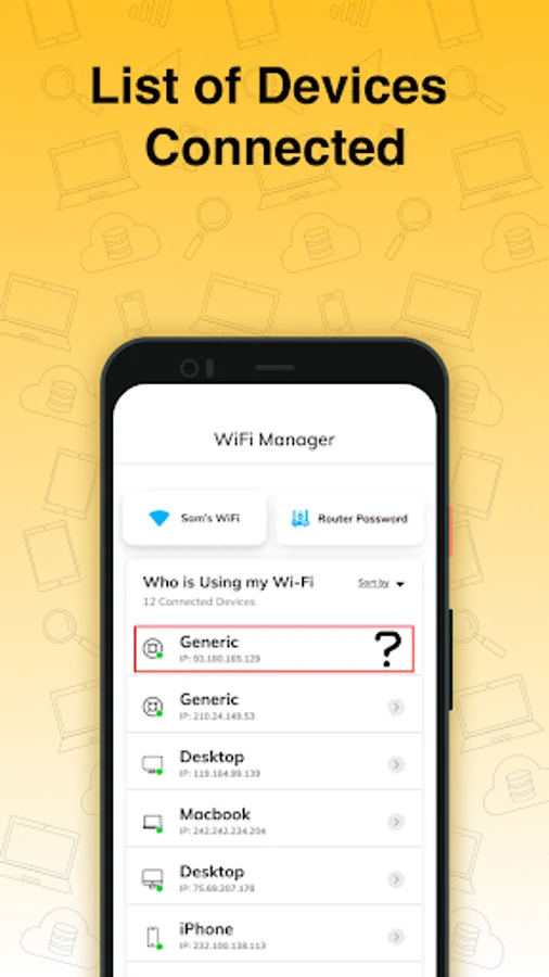 With this WiFi scanner app, you can quickly scan your network and see a list of all the devices that are currently connected, as well as their IP and MAC addresses. The smart app can also distinguish between types of devices(Smartphones/Computers) and identify the make of the particular device in use. This can be helpful for identifying any unauthorized devices or potential security threats, and for optimizing your network's performance by identifying and removing any unnecessary devices. Overall, a "Who is on my wifi" finder app is a must-have for anyone who wants to keep their network secure and running smoothly scanner.