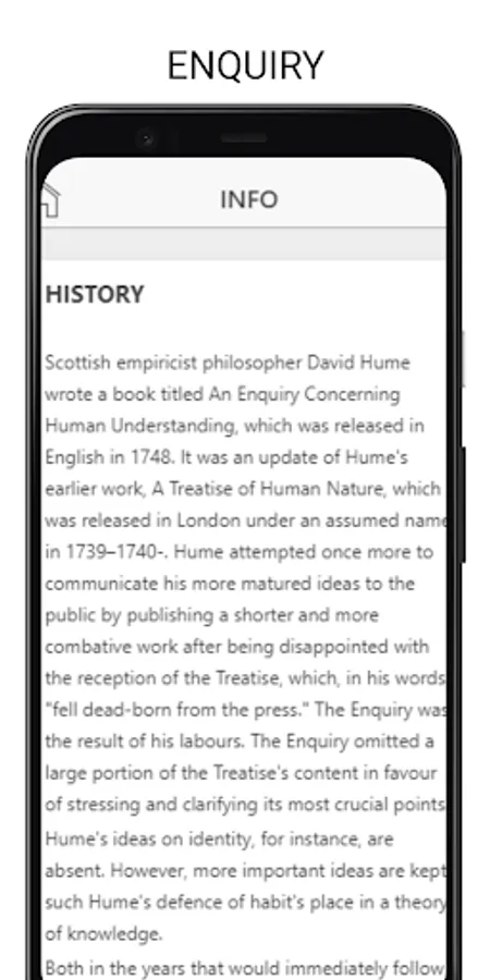 It was an update of Hume's earlier work, A Treatise of Human Nature, which was released in London under an assumed name in 1739–1740-. Hume attempted once more to communicate his more matured ideas to the public by publishing a shorter and more combative work after being disappointed with the reception of the Treatise, which, in his words, "fell dead-born from the press." The Enquiry was the result of his labours. The Enquiry omitted a large portion of the Treatise's content in favour of stressing and clarifying its most crucial points.