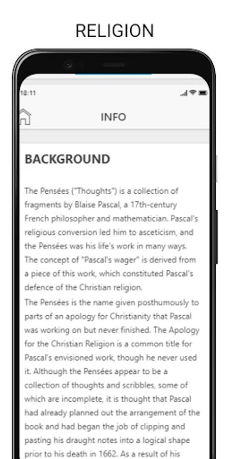 Pascal's religious conversion led him to asceticism, and the Pensées was his life's work in many ways. The concept of "Pascal's wager" is derived from a piece of this work, which constituted Pascal's defence of the Christian religion.