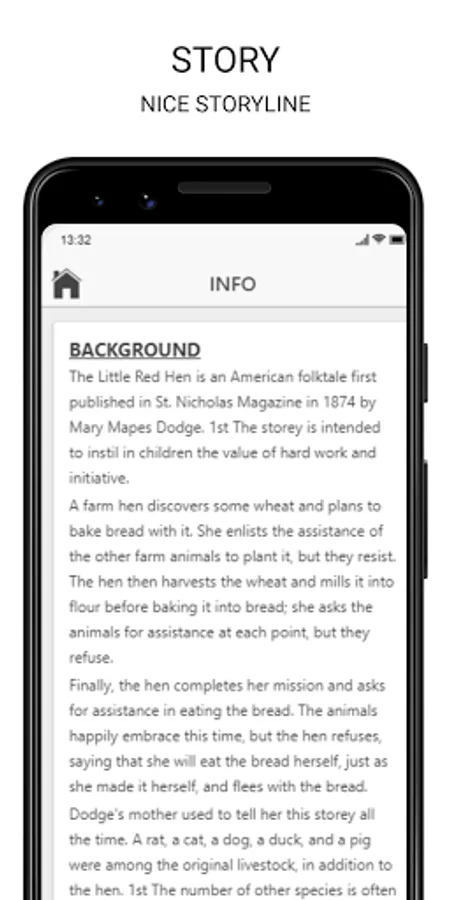 1st The story is intended to instill in children the value of hard work and initiative. A farm hen discovers some wheat and plans to bake bread with it. She enlists the assistance of the other farm animals to plant it, but they resist. The hen then harvests the wheat and mills it into flour before baking it into bread; she asks the animals for assistance at each point, but they refuse. Finally, the hen completes her mission and asks for assistance in eating the bread.