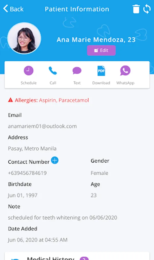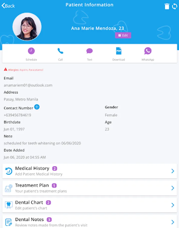 ● Keep track of your patients’ Personal Information, Medical History, Multi-teeth Dental Charting, Dental Notes, Photos, and Cash Payments.