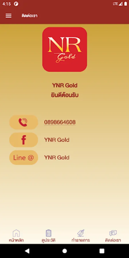 Gold Savings App can send savings items through the app. View Savings History Send resale interest and view transaction history to interest and resale transactions of Thong Nuanrat Department Store.