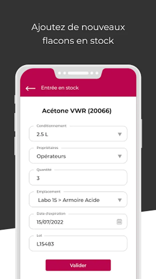 Have you just received an order for chemicals? You can enter your bottles in stock directly from the application.