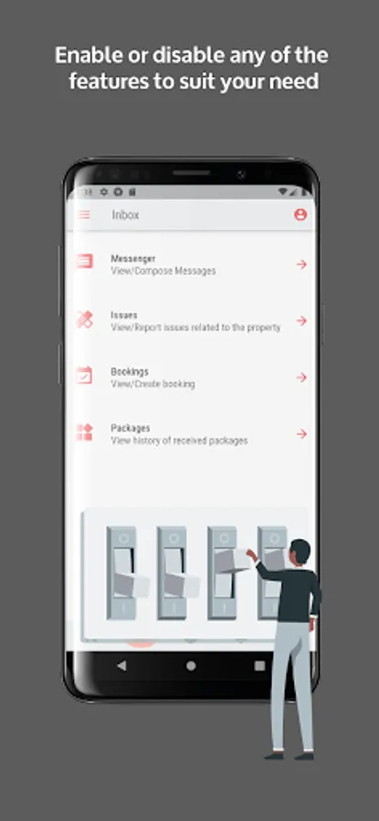 The mobile app allows tenants to communicate with the management company, create maintenance requests, book available services, and receive live updates