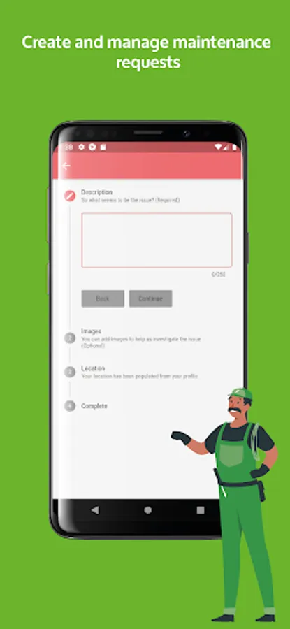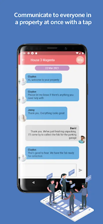 The mobile app allows tenants to communicate with the management company, create maintenance requests, book available services, and receive live updates