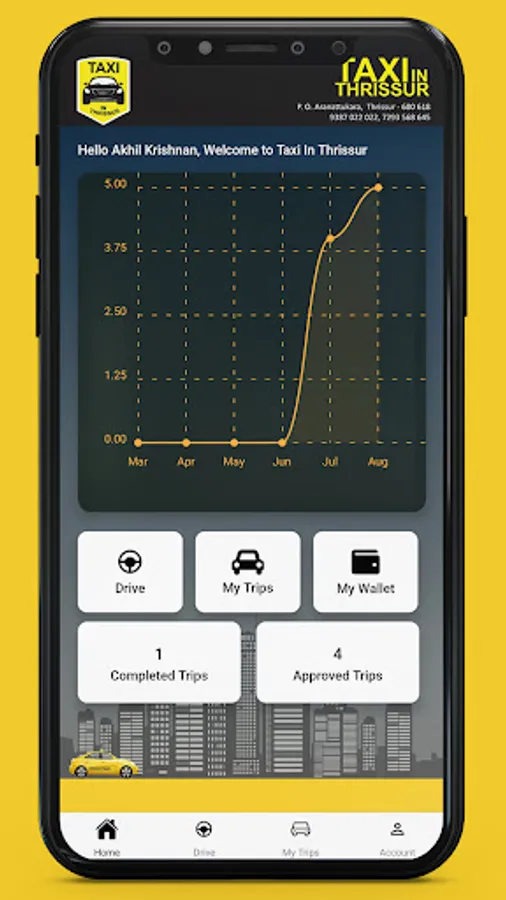 Taxi In Thrissur app that assists the taxi drivers to keep track of the details of their trip. The drivers can input the details throughout the trip and update accordingly. The completed trip will be approved by the admin and the payment transaction for the same can be seen in the “My Wallet” option.