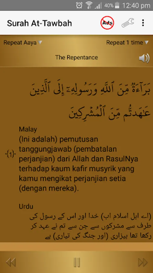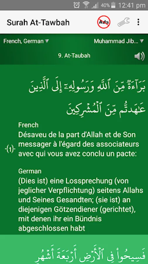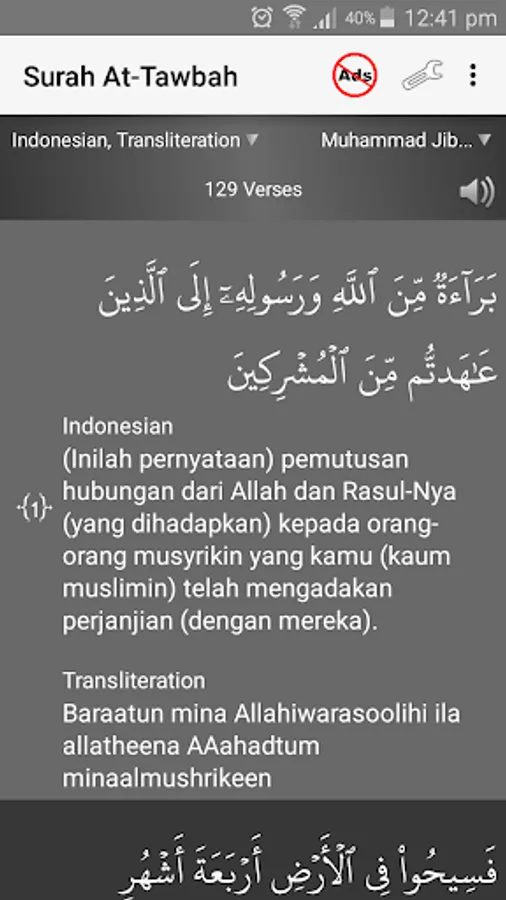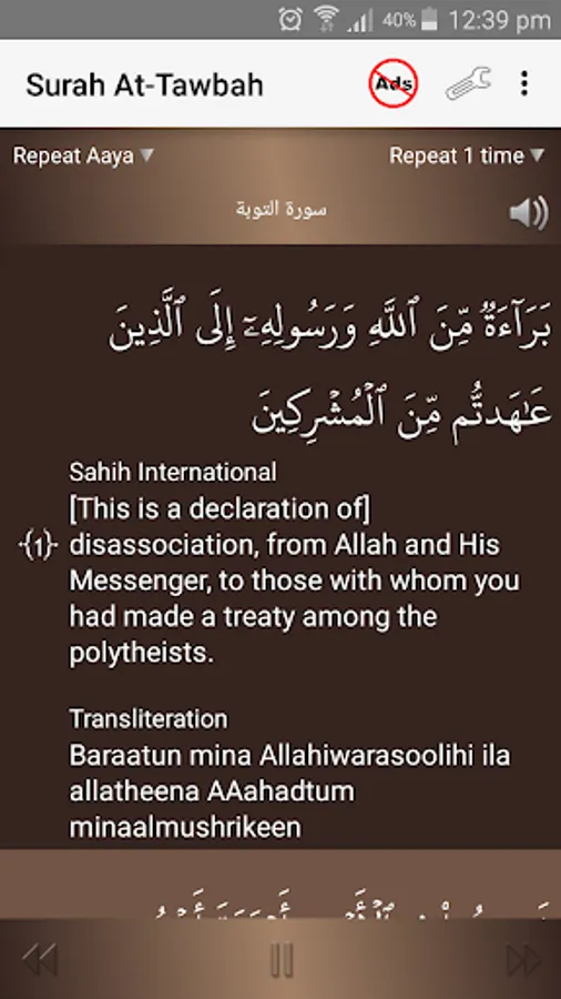 Read and listen verse by verse recitation of Surah At-Tawbah - سورة التوبة in beautiful voices of many International reciters. The only app with so many reciters, translations and themes. And its free.