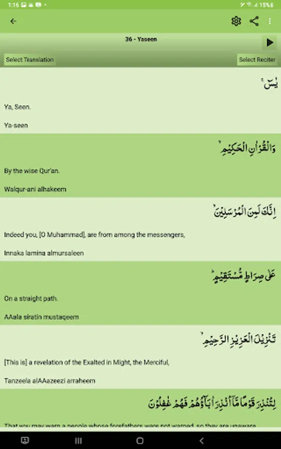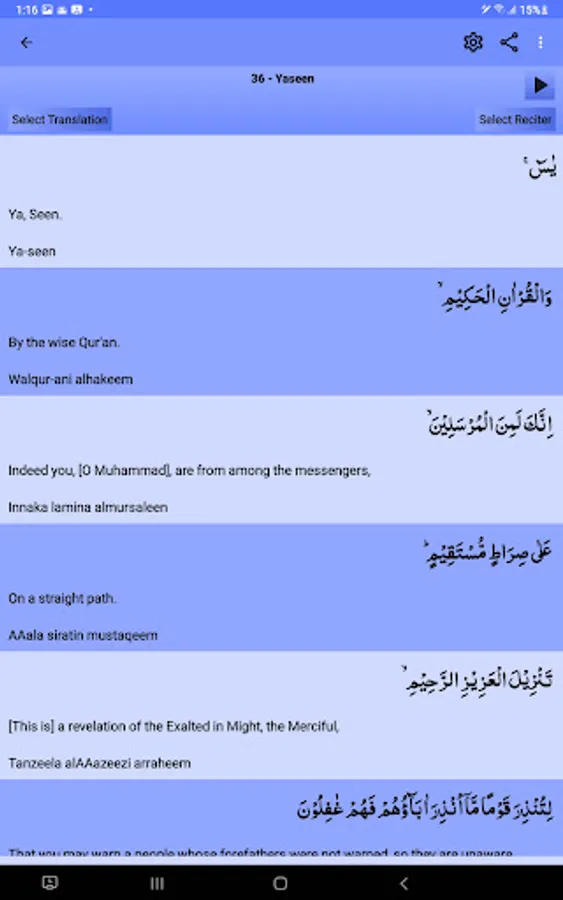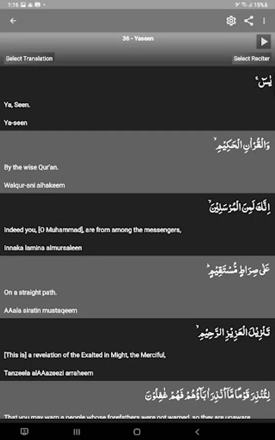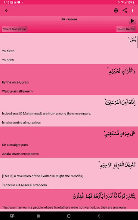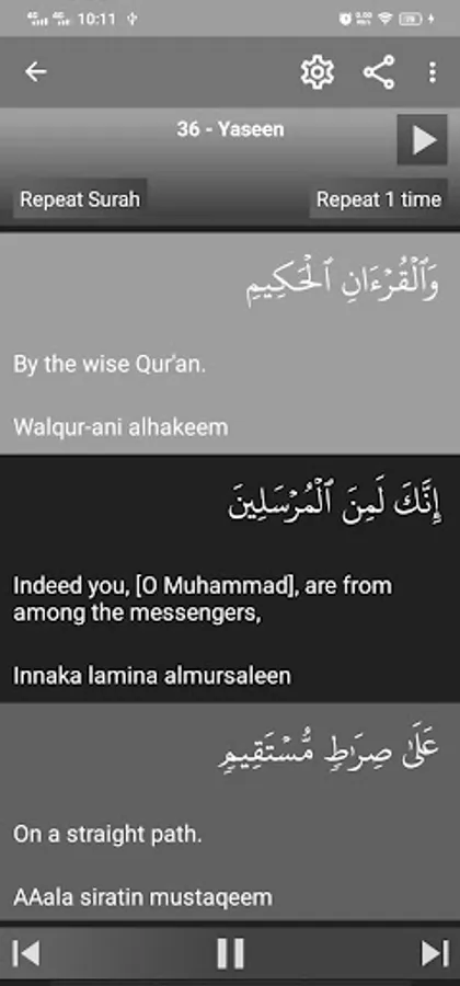 Read and listen verse by verse recitation of Surah Yaseen ( يسٓ ) in beautiful voices of many International reciters. The only app with so many reciters, translations and themes. And its free.