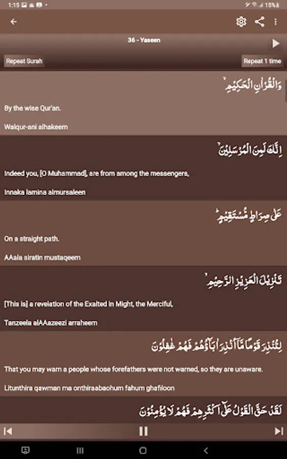 • Repeat verse or surah infinite time to help you memorize any surah or verse.