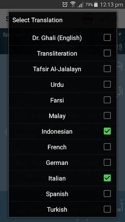 • Select two translations at the same time.